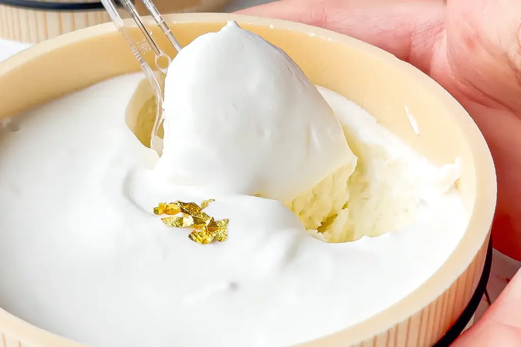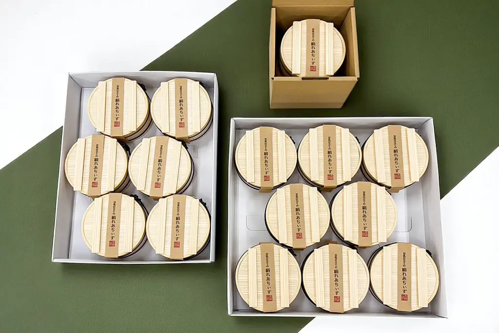 「絹れあちぃず」は、見た目にもこだわっています。曲げわっぱに詰められたスイーツは、和の趣きが漂い、特別感を演出します。さらに、仕上げに金箔を添えることで、華やかさが増し、贈り物や手土産にぴったりです。
