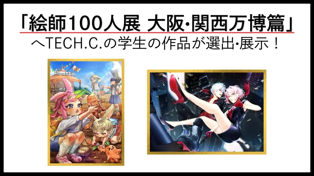 2025年6月11日(水)から17日(火)にかけて、大阪・関西万博内ギャラリーWESTにて開催される「絵師100人展 大阪・関西万博篇」に、東京デザインテクノロジーセンター専門学校(TECH.C.)の学生2名の作品が展示されることが決まりました。この展示は、未来のクリエイターたちが注目される貴重な機会です。