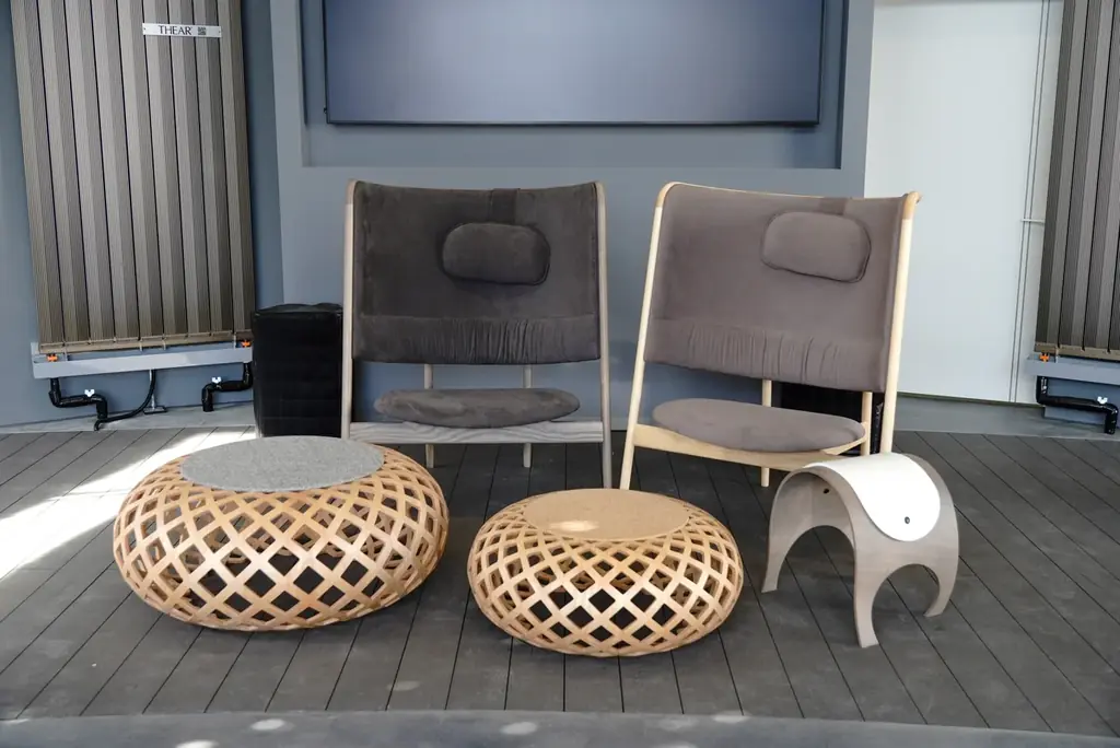 島本礼子氏が発表した「想うベンチ」は、大阪府内の材木を使用し、製材所と3人のデザイナーと共に作り上げたプロダクトです。デザイナーたちは、大阪の森を訪れ、命の存在感を感じ取り、「木も生き物である」という想いを込めて、3つのテーマで表現しました。