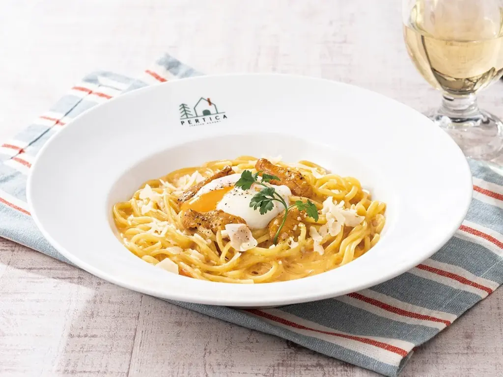 うにの磯の味わいとカルボナーラの濃厚なクリーム感が融合した贅沢な一品。トッピングの温泉玉子がまろやかさを加え、味わいの変化を楽しむことができます。