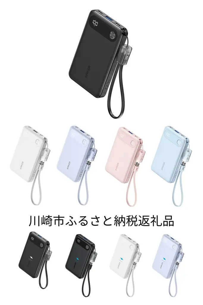 - Anker Power Bank(20000mAh, 22.5W, Built-In USB-C ケーブル) – 製品型番:A1647