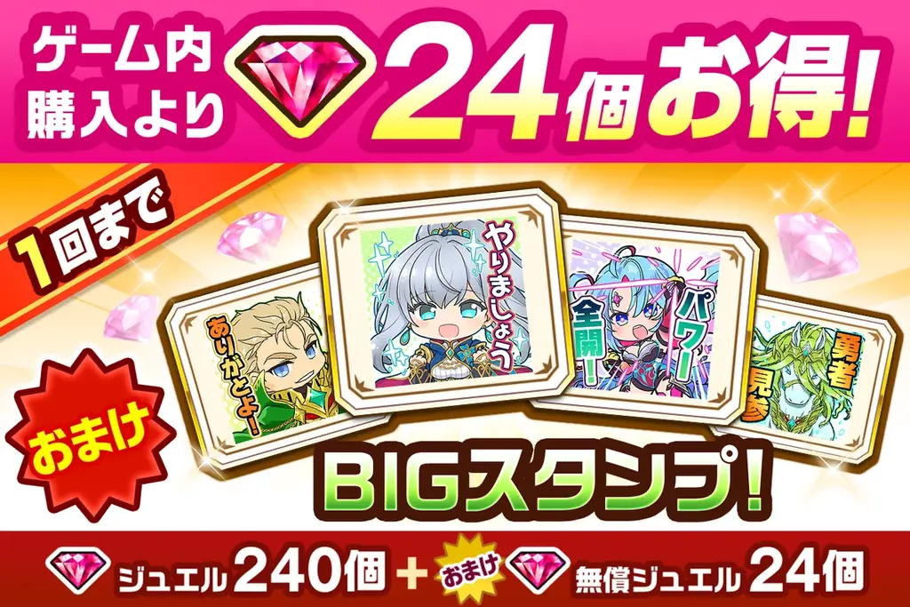 BIGスタンプ付きジュエルパック 3,600円 「ジュエル」240個、「無償ジュエル」24個、「BIGスタンプ」4個、「EXルーン」2個