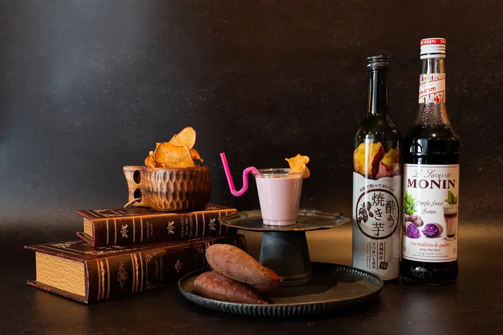 紫芋のシロップと芋のペーストを使用した贅沢なカクテル。