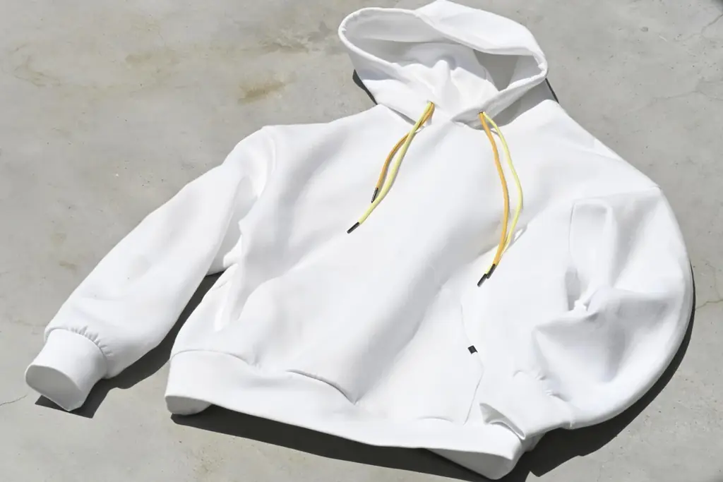 すべてのスウェットは完全受注生産となり、お届け時期は10月中旬〜11月上旬頃を予定しています。この期間に受注された商品は、手作業で一本ずつ紐を通し、心地よい空気を纏った状態で届けられます。