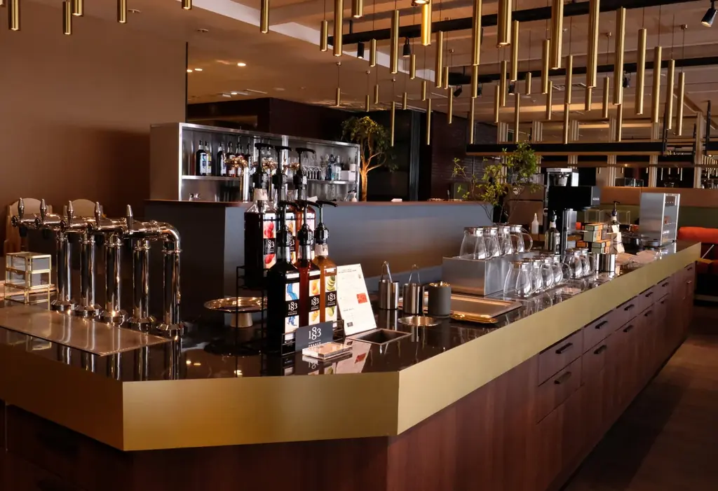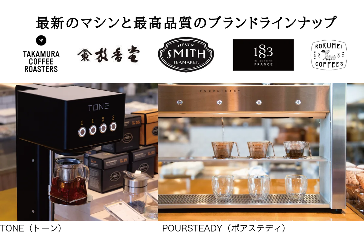 「ゴールデンアフタヌーンティー」では、全長10メートルの豪華なドリンクバー「ビバレッジバー」が設置されており、ここで提供される飲み物はすべて飲み放題です。高級紅茶「スティーブンスミスティーメーカー」や、ロースタリー直送のスペシャリティコーヒー、さらに茶師が厳選した日本茶も楽しむことができます。