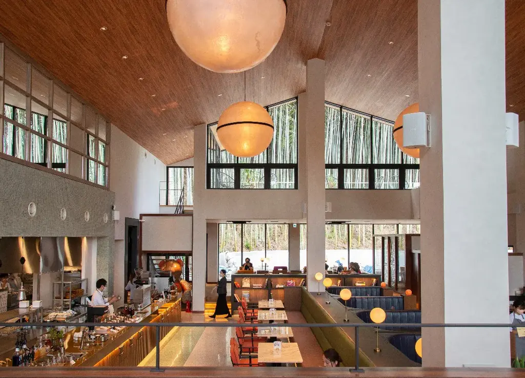 - 開放的な景観と、竹林を臨むスカイテラスが特徴。季節ごとの風情を楽しむことができる。