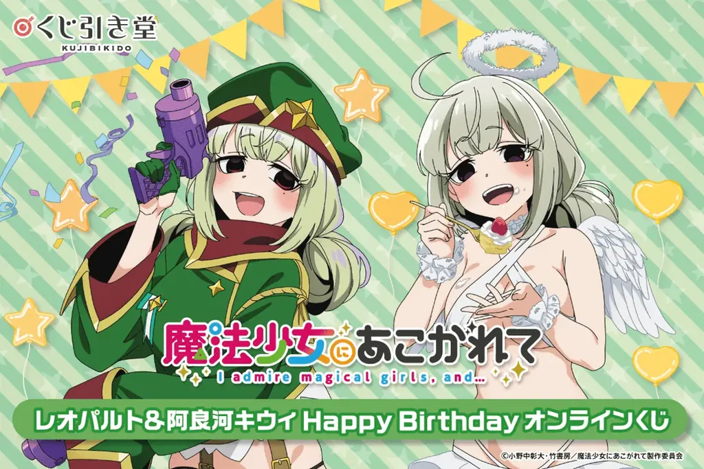株式会社KADOKAWAは、2025年7月6日12時より、運営するオンラインくじサービス「くじ引き堂」にて、TVアニメ「魔法少女にあこがれて」のキャラクター、レオパルトと阿良河キウィの誕生日を記念した特別なオンラインくじを販売します。このくじは、彼らの誕生日である7月6日に合わせて、描き下ろしイラストを使用したオリジナルグッズが手に入る豪華な内容となっています。