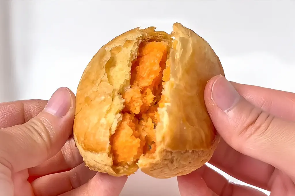 - 冷やして(冷蔵庫で2〜3時間):メロン餡の風味が際立ち、パイはほろほろと口の中でほどける食感に変化します。
