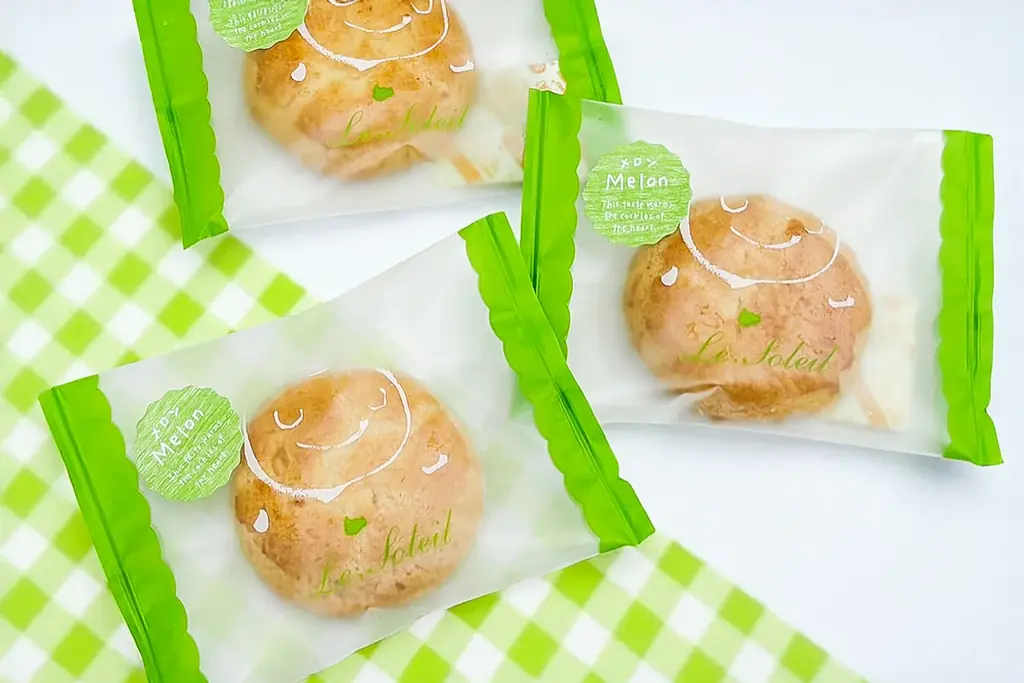 この「メロンパイ」は、見た目も涼しげで、キミドリ色のパッケージが特徴です。お菓子のたいようオリジナルの太陽のマークとメロンカラーのパステルなシールがデザインされており、子どもたちにも人気の可愛らしいデザインとなっています。