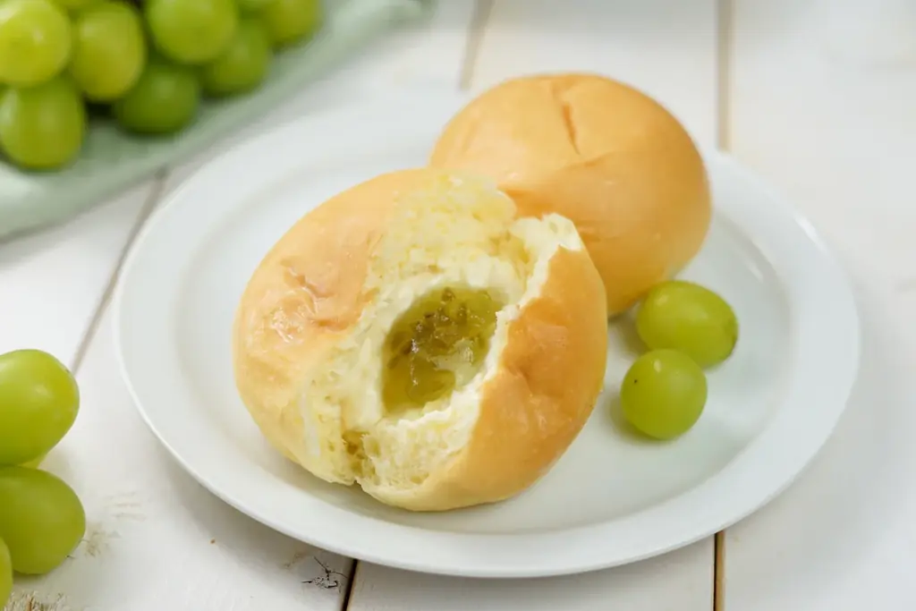 - 上品で華やかな香りのシャインマスカットジャムを使用したくりーむパン。くちどけの良いクリームがみずみずしい果肉感のあるジャムを引き立てます。