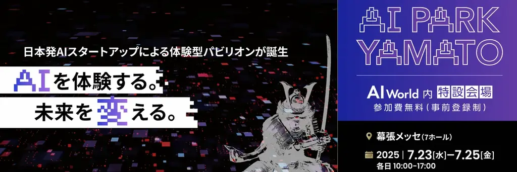 エバーリッジ株式会社は、2025年7月23日(水)から25日(金)の3日間、日本初となるAIスタートアップ特化型ハンズオン体験イベント「AI Park YAMATO 2025」を開催します。このイベントは、最先端のAI技術を体験できる貴重な機会であり、来場者は実際にプロダクトを触れながら、その効果や実装可能性を検証することができます。