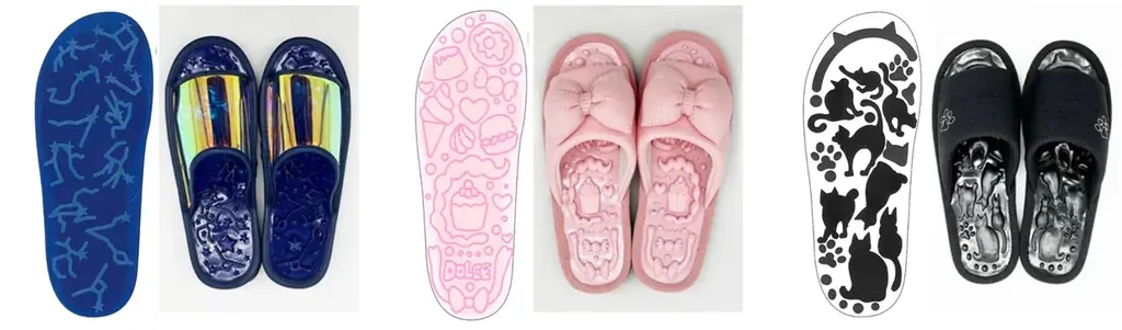- ブルー(星座):夜空にきらめく星座や星々をイメージした突起デザイン。アッパーにはクリア素材を使用し、見た目も涼やかに仕上げています。