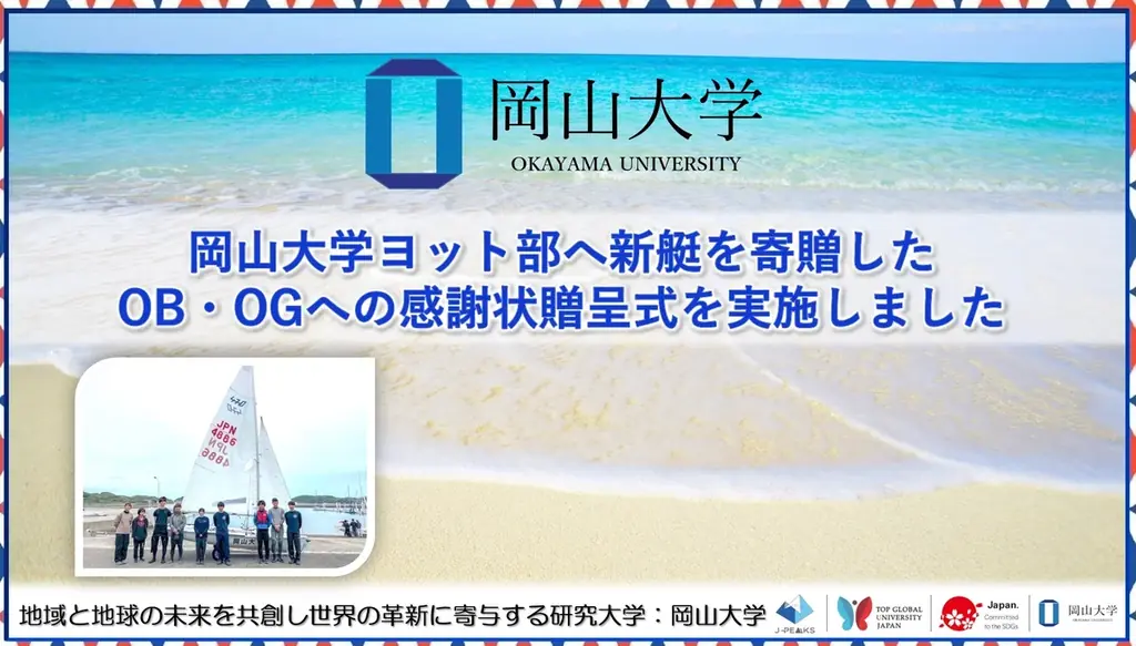 岡山大学ヨット部の活動や寄贈式に関する詳細情報は、以下のリンクから確認できます。