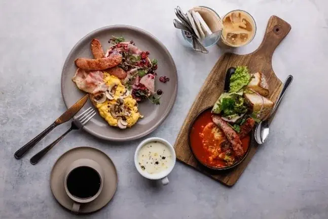 ホテル内には、地元の食材を使用したホテルダイニング「BASE445」が併設されています。ラテグラフィックが監修したこのレストランは、地域の食や体験を通じてゲストに新たな発見を提供することを目的としています。