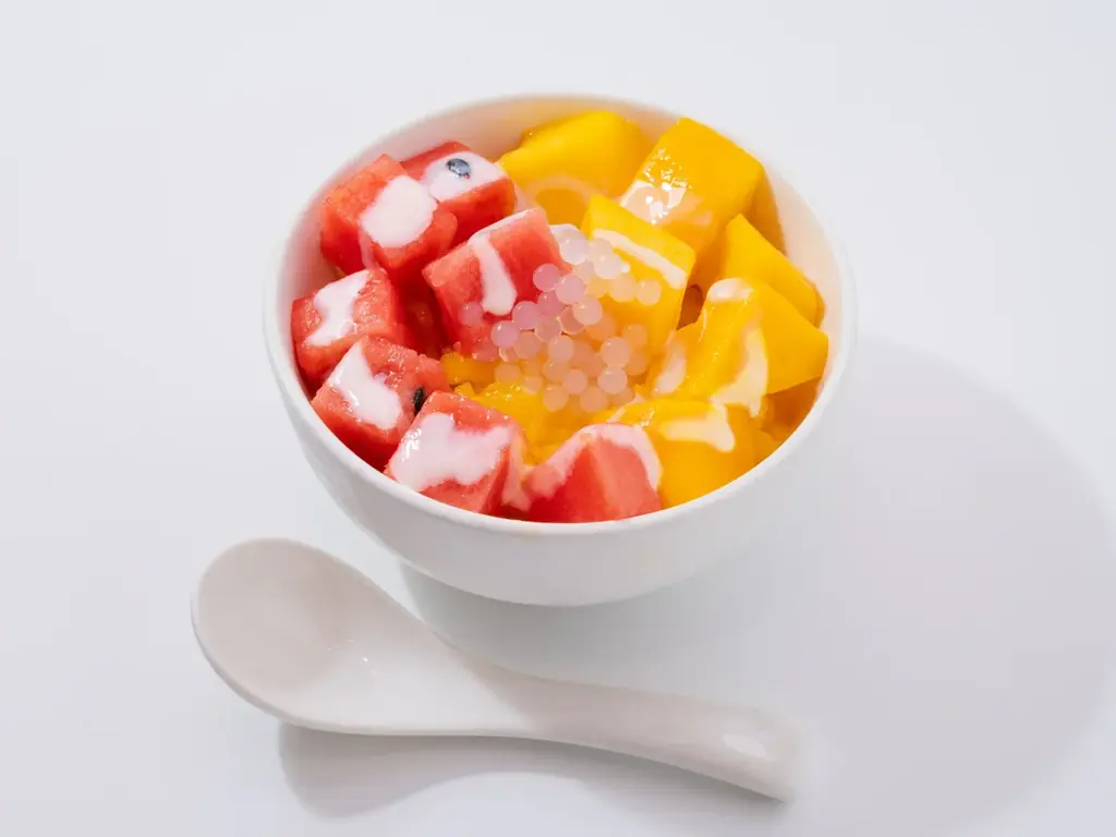 - マンゴー・スイカ豆花 – 1個 1,628円(騒豆花): 台湾の伝統的なデザートで、フレッシュなマンゴーとスイカを贅沢にトッピング。
