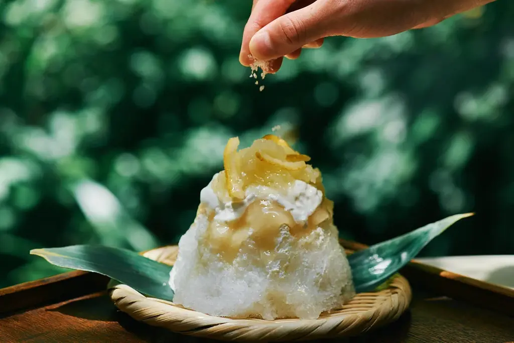 - かき氷「塩二郎の塩ミルク 土佐文旦」:高知を代表する柑橘・土佐文旦の蜜と自家製ミルクを使用し、左右で異なる味わいを楽しむことができます。