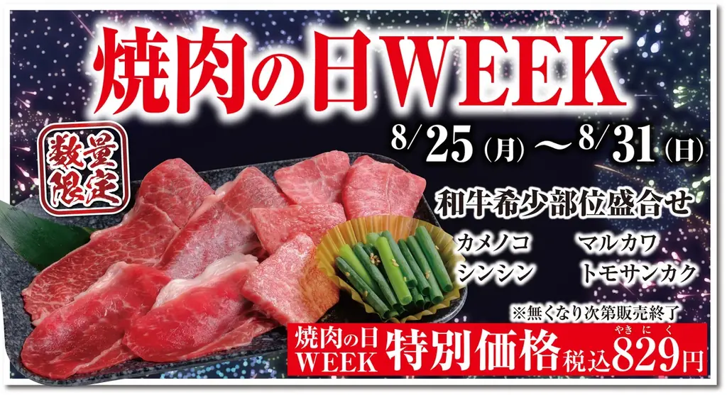 8月25日開始 あみやき亭「焼肉の日WEEK」和牛盛829円&ポイント3倍