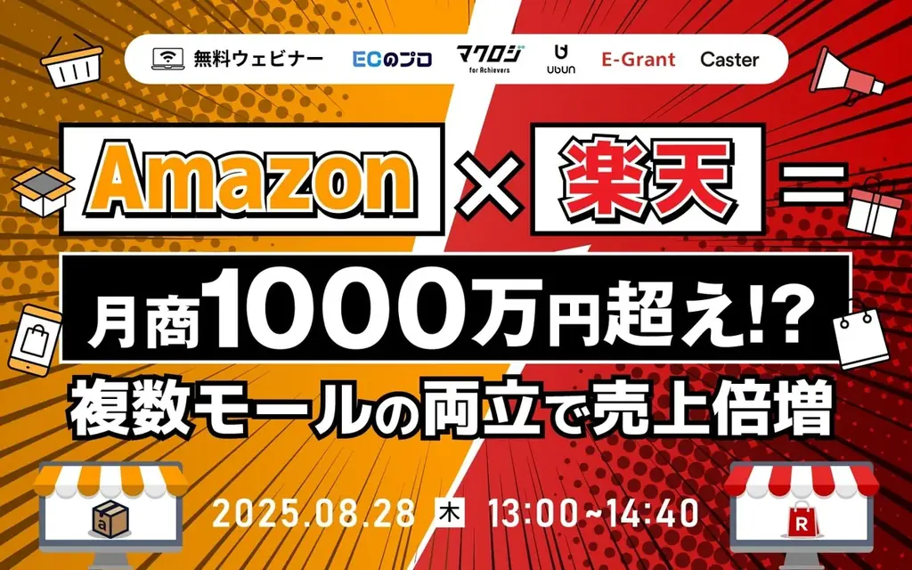 2025年8月28日にオンラインで開催されるセミナー「Amazon×楽天=月商1000万超え? 複数モールの両立で売上倍増」は、楽天市場とAmazonという性格の異なる大手モールをどう組み合わせるかに焦点を当てた構成となっています。主催は株式会社WUUZYで、EC/通販事業に携わる担当者を対象に、モールごとの強みを活かした運営と最適な投資配分を示すことを目的としたイベントです。