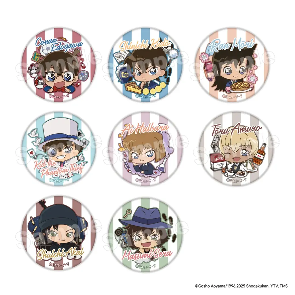 第1回で取り扱う商品は主に缶バッジとアクリルキーホルダーです。56mmという共通サイズの缶バッジが複数シリーズで展開され、ブラインド形式のトレーディング商品と単品販売の商品が混在します。