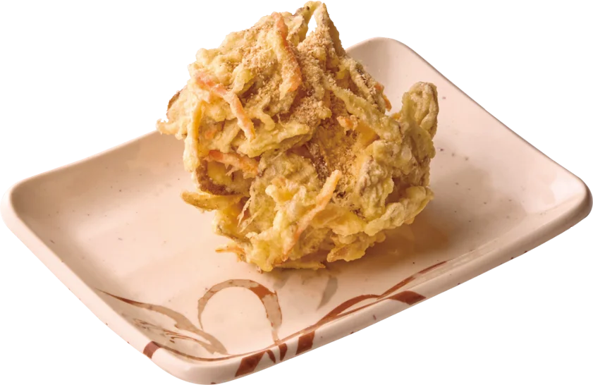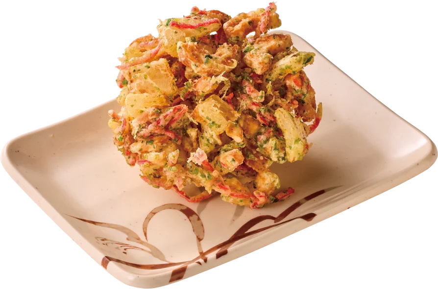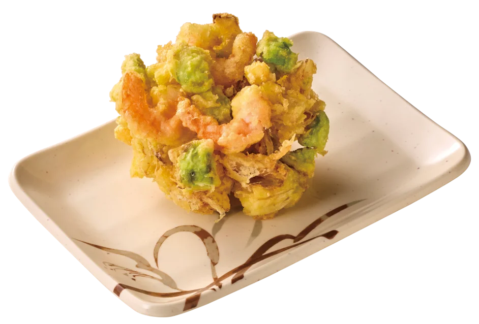 - 特長:海老・ほたてを主体に魚介の旨みを活かしたごちそう系かき揚げ