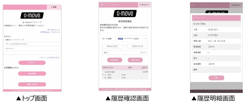 QUADRAC株式会社 | 交通事業者向け決済および認証に関するSaaS型プラットフォーム「Q-move」の提供、タッチ決済履歴の確認手段の提供 |