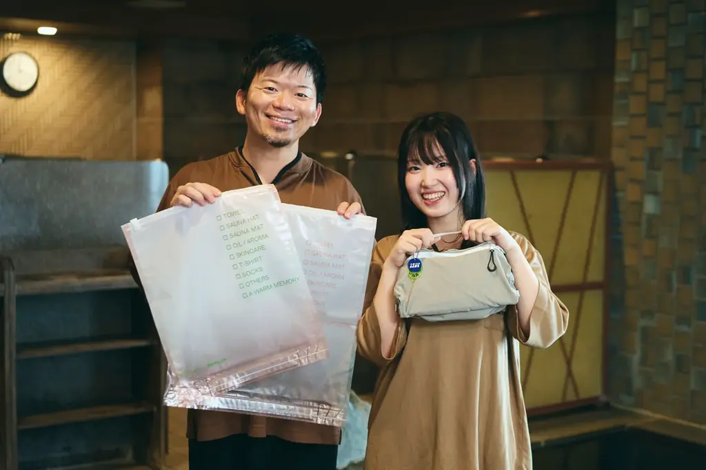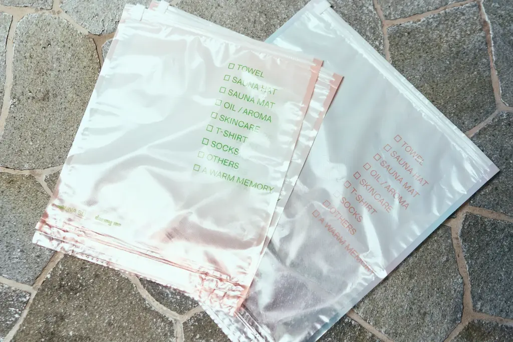 圧縮方法はロール状に丸めることで自然に空気が抜ける仕組みを採用しており、特にMサイズはサウナグッズやコスメをまとめて持つのにちょうど良いとされる。デザインはサウナの熱気と冷気を想起させるカラーリングと、蒸気のようなグラデーションを施し、中に入れたものを程よく隠す配慮がある。さらに、サウナでありがちな忘れ物チェックリストをデザイン要素として取り入れている。