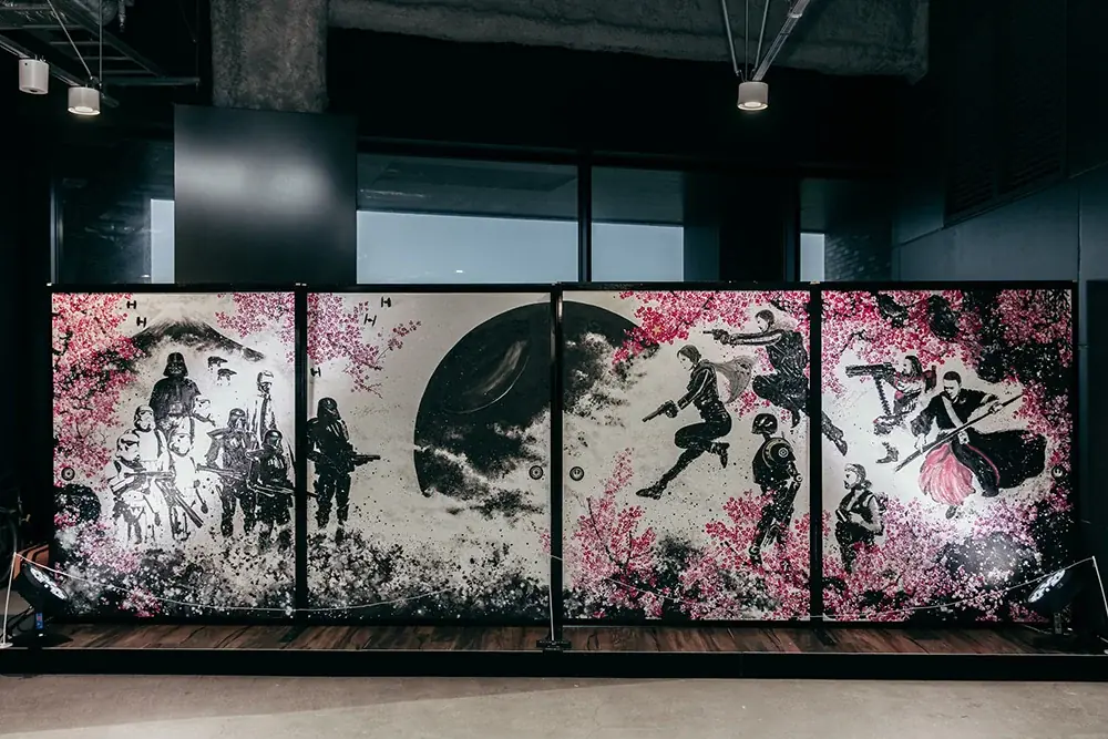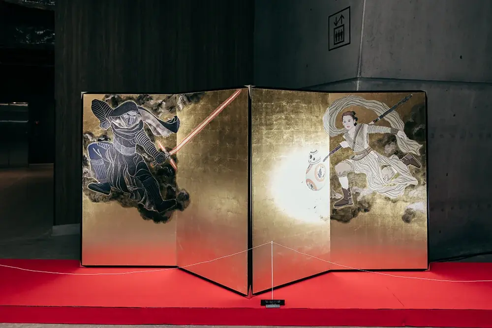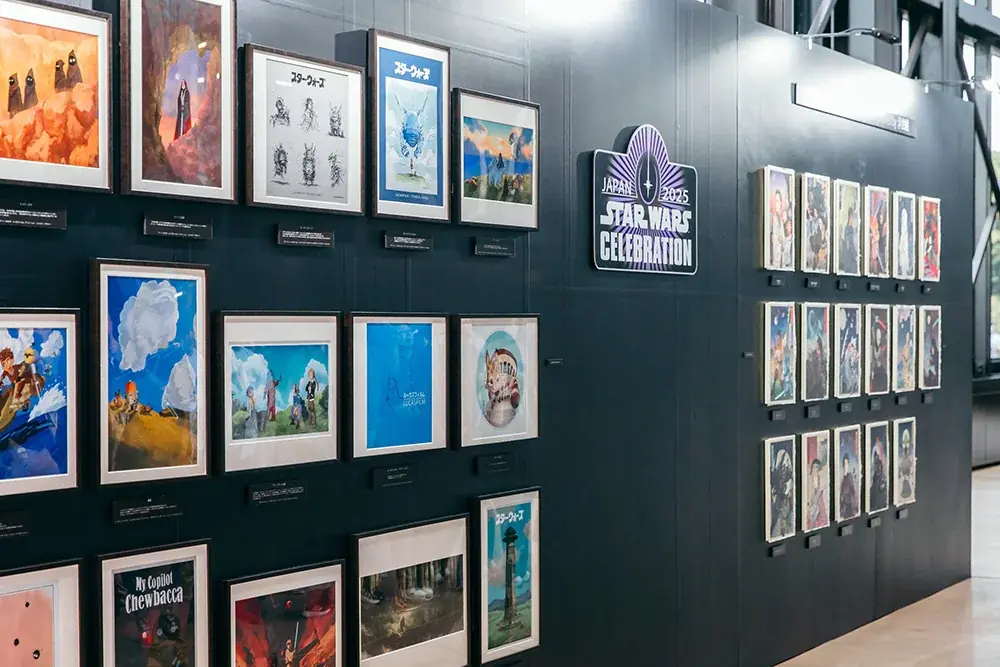 展示面では、日本文化をテーマにした内容が特色となりました。まず、「スター・ウォーズ セレブレーション ジャパン 2025」を記念して制作された浮世絵アートが展示され、従来のスター・ウォーズ表現とは異なる視点で作品世界が紹介されました。