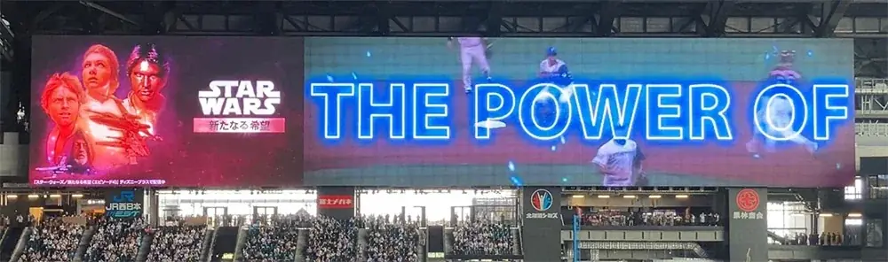 イベント期間中、特に8月29日(金)~31日(日)の3日間は大型ビジョン映像もスター・ウォーズ仕様となり、会場全体の演出が強化されました。映像による空間演出は観客の視覚体験を大きく拡張し、試合観戦の雰囲気が作品世界と連動する形で演出されました。