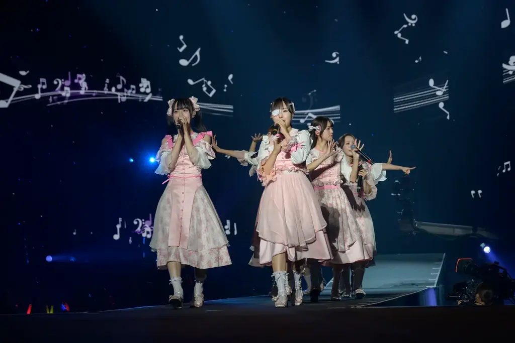 中盤はピンクの衣装にチェンジして「僕は君になれない」を力強く披露。楽曲ごとに衣装のアクセサリーが異なる細部のこだわりも見られ、グループの「格好いいのにキュート」という両面性が表現されました。