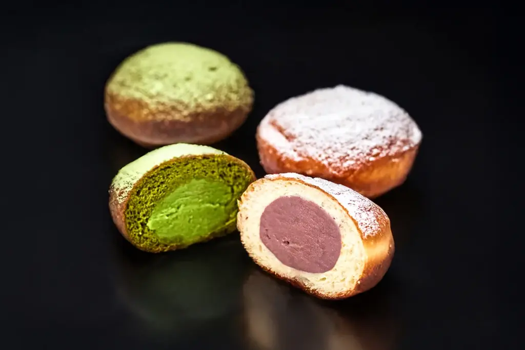 もっちりと軽やかな口あたりの生地の中に、すっきりとした甘さのあんこをたっぷり包み込んだドーナツです。隠し味にほのかなカカオを忍ばせ、味の深みを出しています。