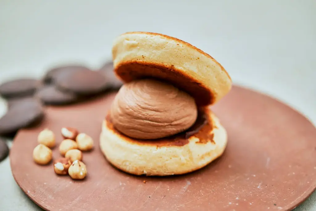 銅板焼きの工程による香ばしさとしっとり感が、チョコレートクリームとナッツの食感を引き立てます。