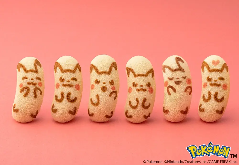 お菓子の方の特徴としては、焼き目にピカチュウ模様をあしらったふかふかのスポンジケーキに、「ナナのみ」をイメージした“ナナのみ風とろ〜りバナナカスタードクリーム”が入っている点が紹介されています。スポンジ模様は6種類あり、ハート模様付きの“ハート付きピカチュウ”は出現頻度が低く、見つけられたら運が良いという設定です。包装はモンスターボールをイメージした袋に1つずつ入っています。