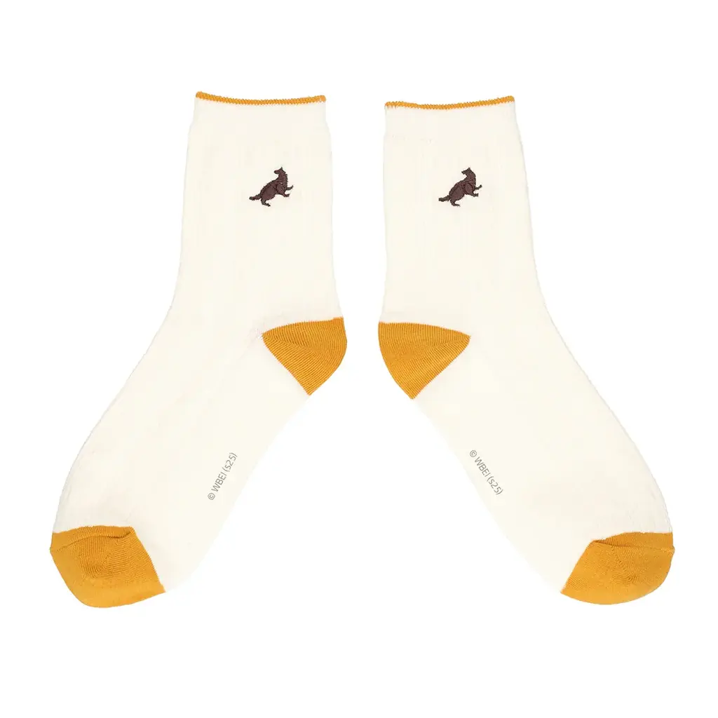寮を象徴する動物をデザインしたケーブル編みソックス(グリフィンドール/スリザリン/レイブンクロー/ハッフルパフ)と、ハニーデュークスをモチーフにしたメロウリブソックスがラインナップされます。