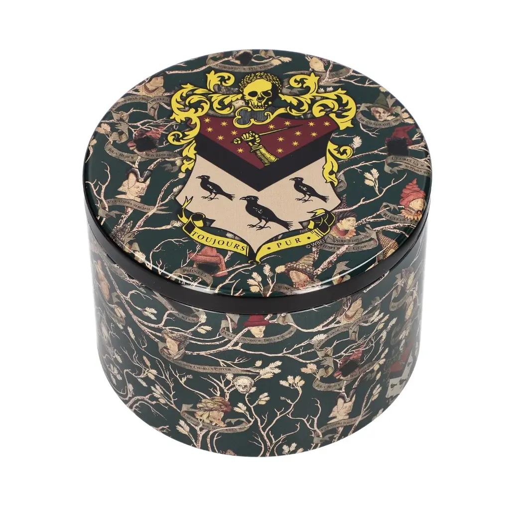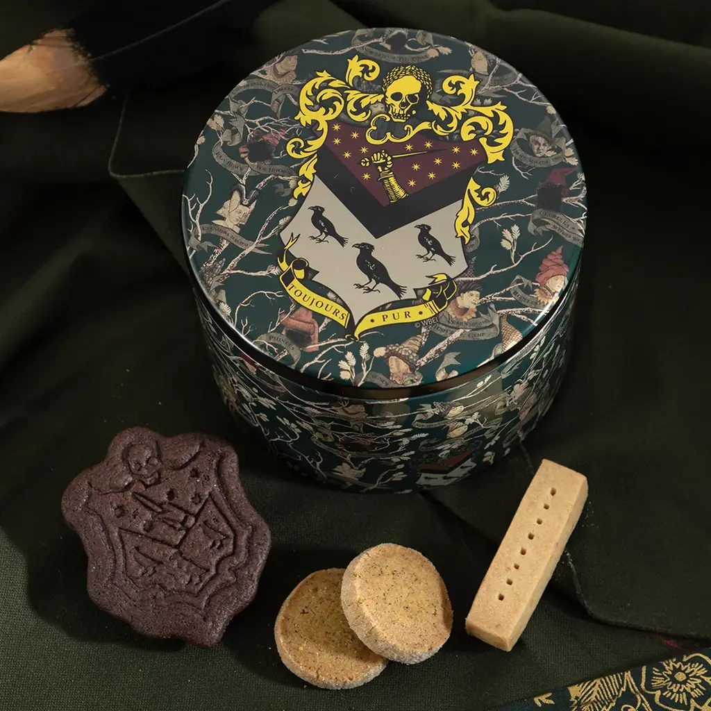 ハリー・ポッター ブラック家 クッキー缶 | 4,400円(税込) | φ130×H93mm | ブリキ(缶)、ブラック家 家紋ブラックココアクッキー・アールグレイクッキー・ショートブレッド(中身) |