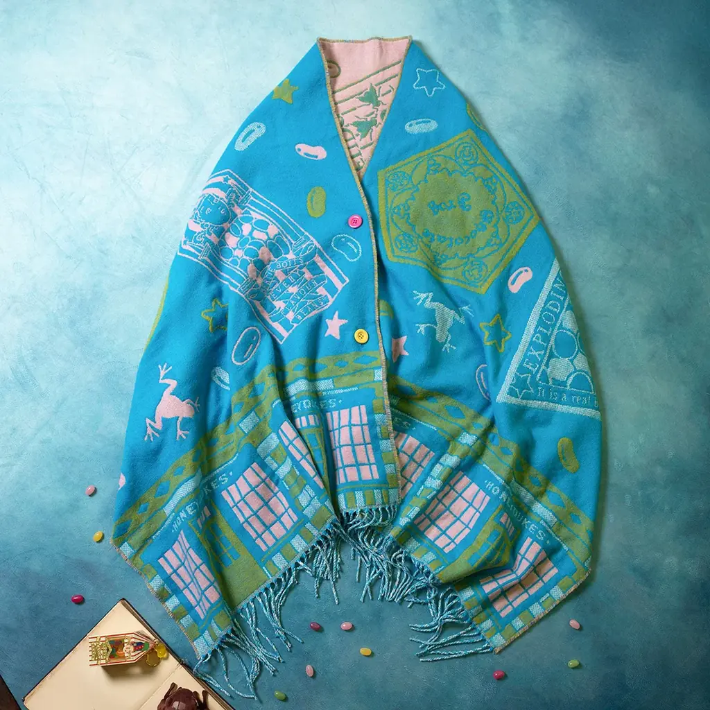 商品名:ハリー・ポッター ストール 9と3/4番線/ハニーデュークス。秋めく季節に合わせた薄手のストールとして展開される2種類のデザインです。