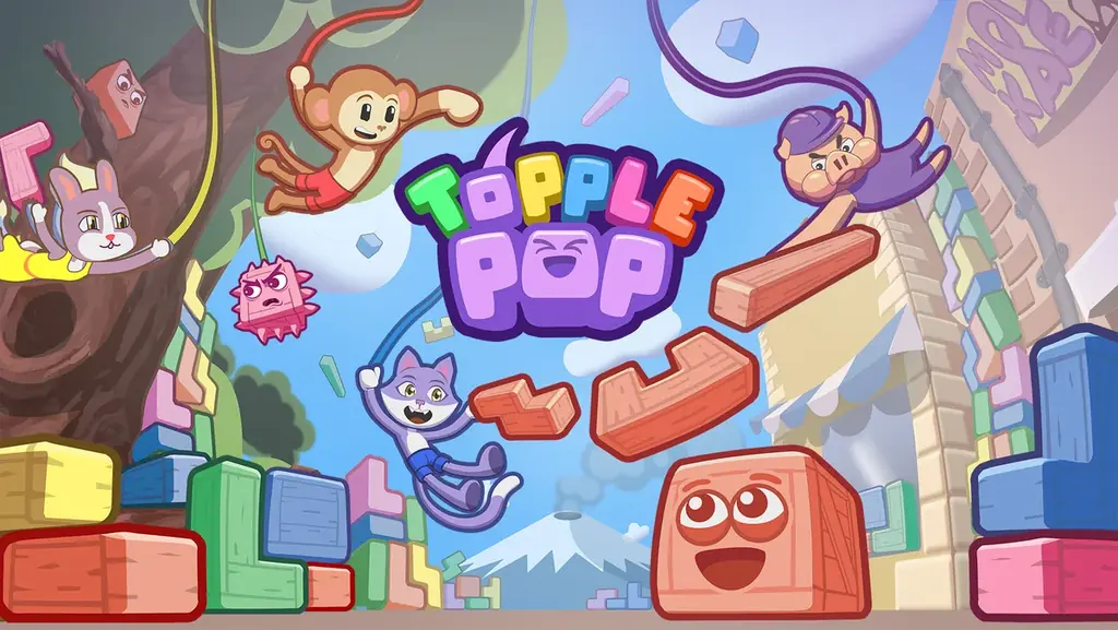 『TopplePOP』 — バンジーロープで動物たちが大暴れするパーティーパズル
