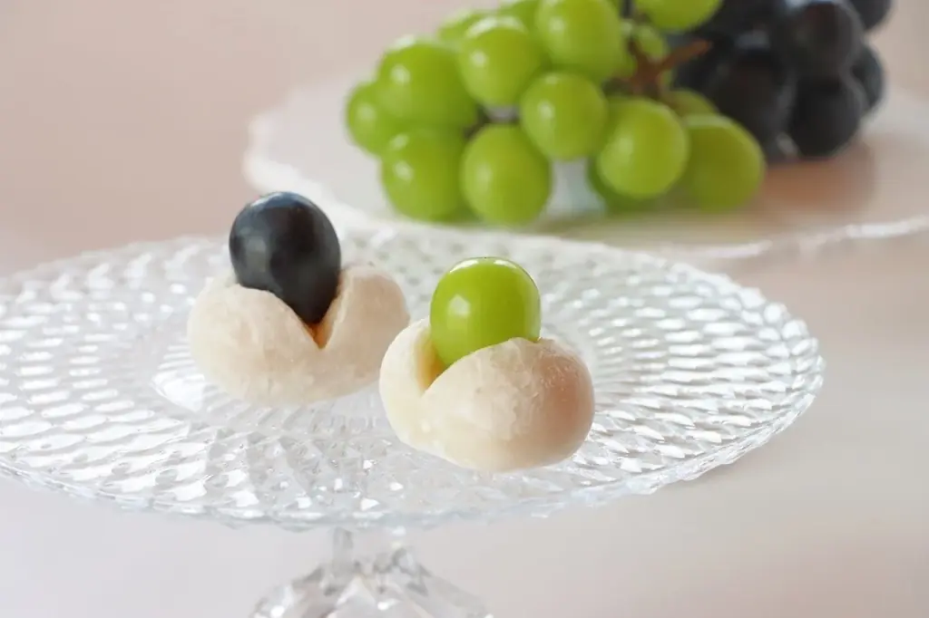 シャインマスカット特有の程よい酸味と甘みのバランスが、あっさりした大福の甘さを引き立てます。果実の瑞々しさが口の中に広がり、和菓子としての奥行きをもたらす仕上がりです。