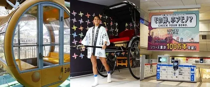 広告は2025年9月8日から原則10月5日まで掲出されます(阪急大阪梅田駅のみ9月21日まで)。人力車の幌やスタッフ着用の半被、観覧車のゴンドラ内、スワンボートの船体など、各スポットの特性に合わせた掲示方法が採られています。
