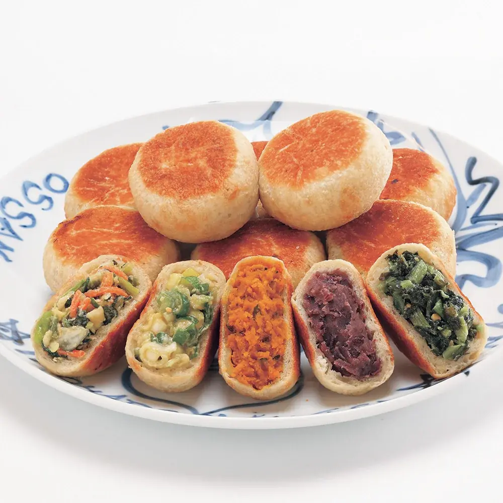 - 〈いろは堂〉(長野県長野市) おやき各種(野沢菜・ねぎみそ・粒あん他計7種/1個) 各291円