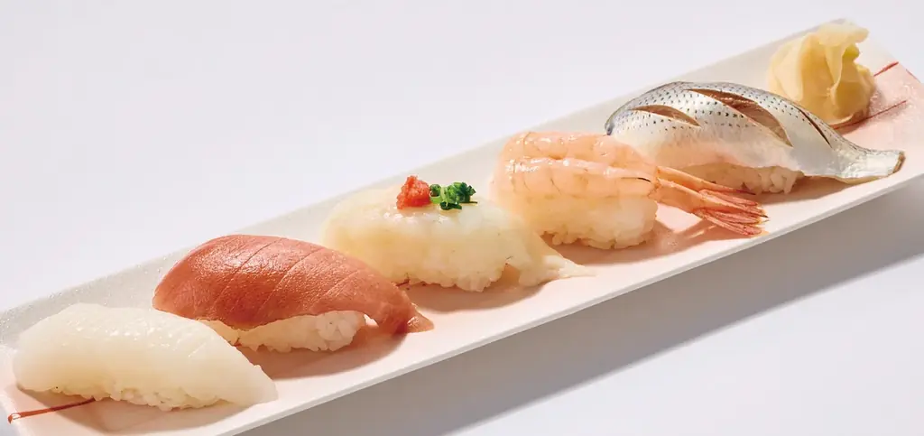 実演販売の代表例として、石川県金沢市の〈金沢まいもん寿司〉が能登や金沢の新鮮なネタを中心ににぎり寿司を提供します。定番メニューの一つ「加賀五彩(5貫)」は1,620円です。会場で握る寿司の鮮度と食感が売りです。