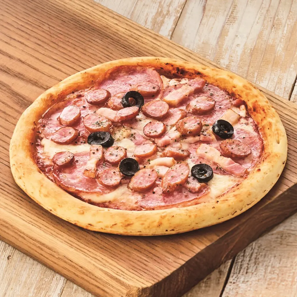 内容:北海道産モッツァレラ、トマト、バジルソース。数量限定。 - ラ・ベットラ・ダ・オチアイ監修:ホエー豚ベーコンと2種ソーセージのミックスピザ
