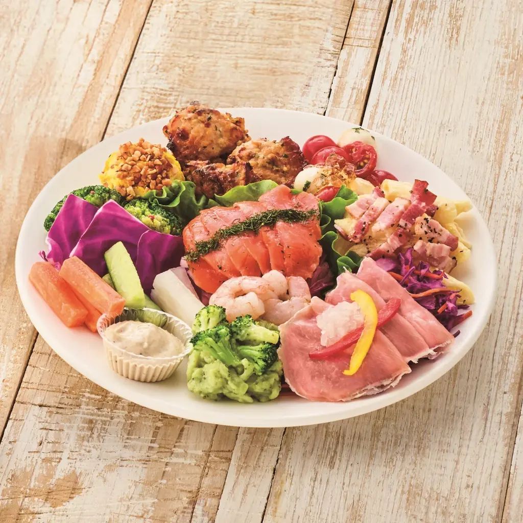 内容:ホエー豚ベーコン、ボロニア・あらびきの2種ソーセージ。パルメザンの香ばしさが特長。数量限定。 - ラ・ベットラ・ダ・オチアイ監修 サラダオードブル