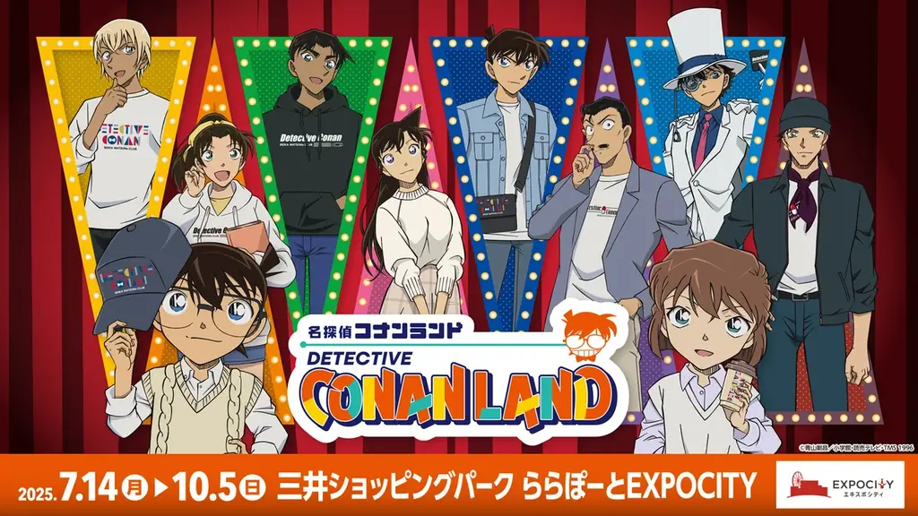 ららぽーとEXPOCITY会場では「名探偵コナンランド」がすでに開催中で、会期は2025年7月14日(月)~2025年10月5日(日)です。会場はオレンジサイド3階の特設会場で、時間は平日が10:00~20:00、土日祝が10:00~21:00となっています。最新の営業時間は施設ウェブサイトで確認してください。会場詳細は次のURLを参照してください:https://conan-land.jp/expocity.html