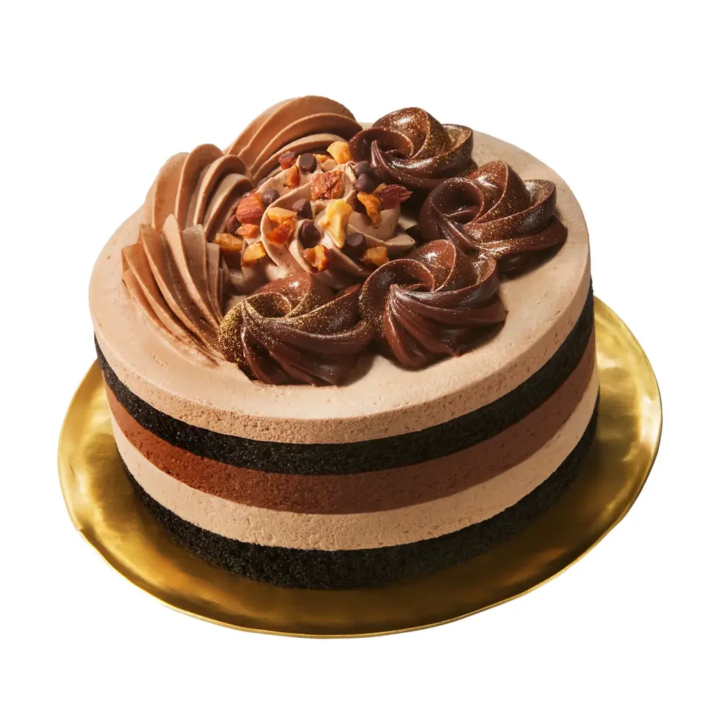 主な構成 | ココアスポンジ、ミルクチョコムース、キャンディングアーモンド、キャラメルソース、ビターチョコムース、金粉・チョコチップ等のトッピング |