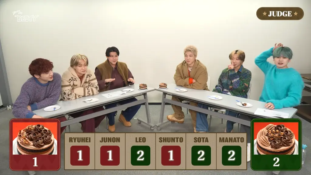 会議の中では、チョコレートベース案とフルーツ案の二択からチョコレート案が選ばれたこと、メンバーの甘党であるRYUHEIさんの発言が決定に影響した場面、MANATOさんが金粉を強く推した経緯、またメンバー同士のやり取りが和やかな雰囲気で進行したことが紹介されています。試食の際にはメンバー全員が肯定的な評価を示したとされています。