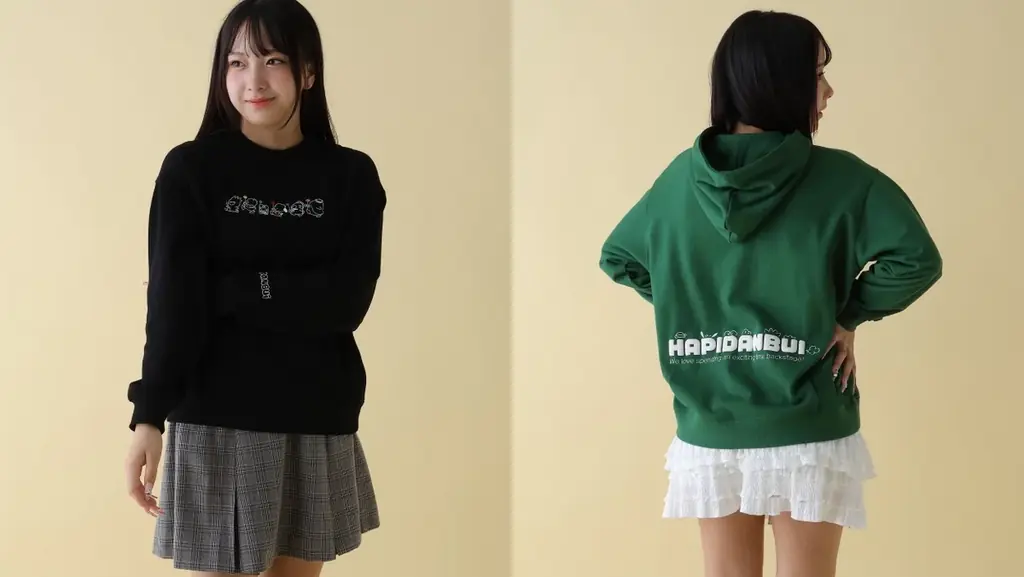 AND YUA ANYははぴだんぶいと初のコラボレーションを実施し、ハイティーン世代をターゲットにしたグラフィックスウェットやパーカーを展開します。スローガン「どんなことも”だいじょうぶい”」を意識したラインナップです。