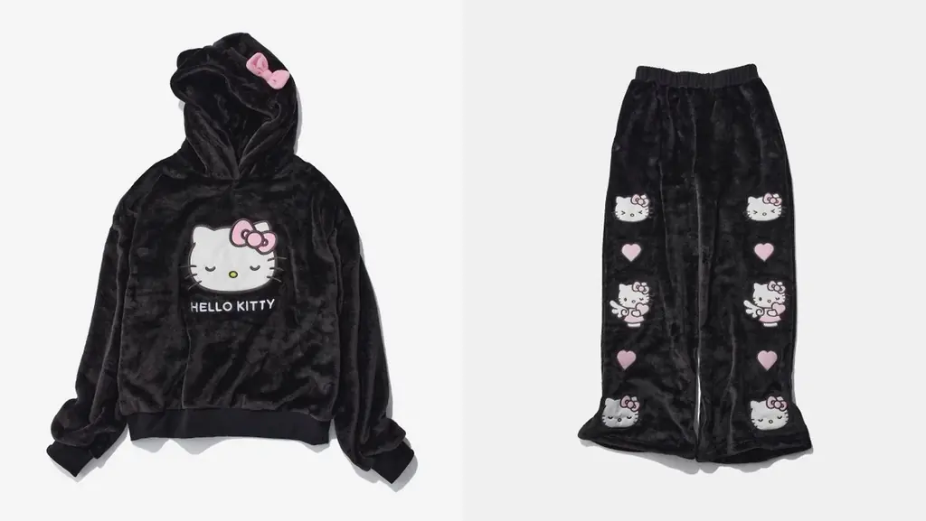 and ST限定として“Wish core”をテーマにしたハローキティのルームウェアを4型で展開します。天使の羽をつけたキティとネオン系のWish coreカラーが特徴で、オーバーサイズでふわふわ生地の仕様です。