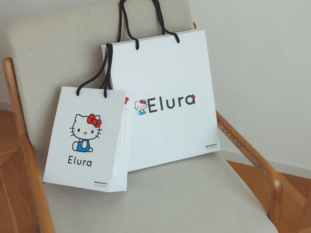 Eluraは「おとなが着たいレトロHello Kitty」を掲げ、小物やニット、カーディガンなど大人向けのレトロ感を意識したアイテムを展開します。合わせてElura限定のショッパー配布も行われます(後述)。