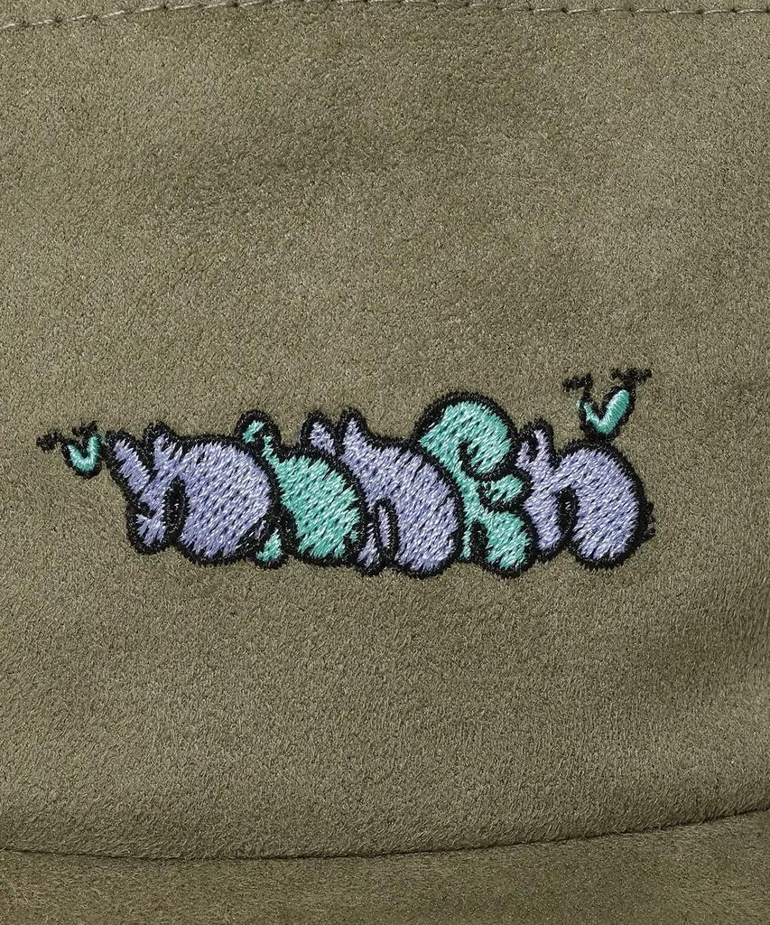 ジェットキャップはストリート感の強いスペシャルコラボ仕様です。神山氏がNANGAのロゴをストリートテイストにアレンジし、フロントにはグラフィティを思わせる手描きフォントを刺繍で表現しています。5枚パネル構成の浅めのシルエットが特徴で、被り方により表情が変わります。