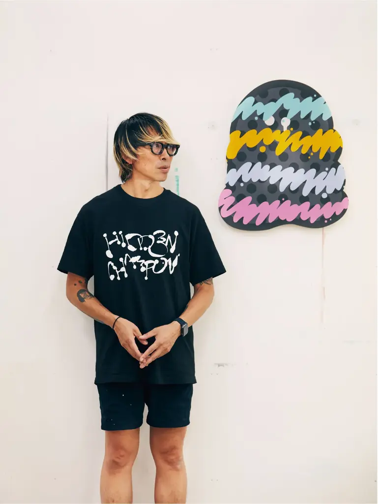 神山隆二(Ryuji Kamiyama)は90年代初頭にグラフィック業界から衣服の世界へと活動を広げ、ブランド「FAMOUZ」として裏原宿でおよそ10年の活動を行いました。その後は路上や公共空間でのライブペイントを中心に制作を続け、2003年に東京で初個展を開催して以降、サンフランシスコ(SF)、ロサンゼルス(LA)、パリ(PARIS)、北欧など海外でも個展・グループ展を展開しています。